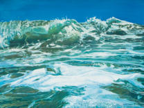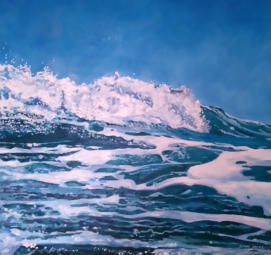 Ditch plains 30 by 40 inches oil on canvasSurf Break “When I took the photo for this painting the wave broke over my head, people see a fish in the foam sometimes”